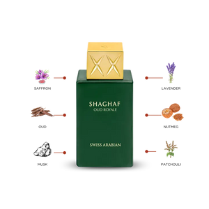 Embark on an unforgettable olfactory journey with Shaghaf Oud Royale, a captivating blend of woody, floral, musk, and spicy oud aromatic notes. Prepare to be enchanted by its irresistible allure, making it an absolute must-have. At the outset, the luxurious combination of Saffron and Lavender casts a spell, enveloping you in a world of opulence and tranquility. The exotic richness of Saffron blends harmoniously with the soothing essence of Lavender, creating a captivating symphony of scents. As the fragrance evolves, the heart reveals the mesmerizing embrace of Oud and Nutmeg, exuding an air of sophistication and intrigue. Finally, the base notes leave an indelible impression. Musk bestows a sensual and seductive aura, while Patchouli adds a touch of depth and mystery to the composition. Indulge in this extraordinary fragrance, crafted for those who appreciate elegance and refinement. Elevate your presence and captivate hearts with this exquisite scent that is destined to become a timeless classic.